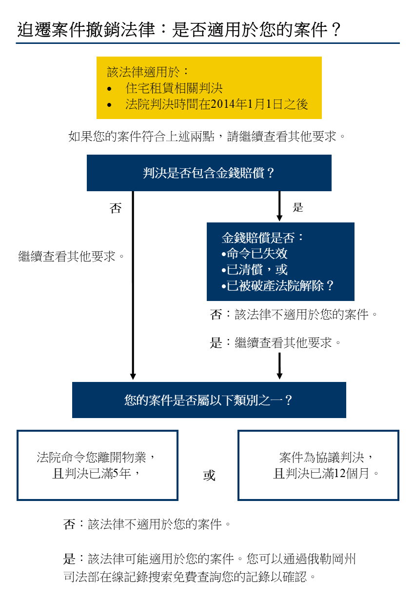 我們正盡最大努力加快封存這些案件。如果您有緊急需求,可以填寫並提交撤銷住宅迫遷判決動議